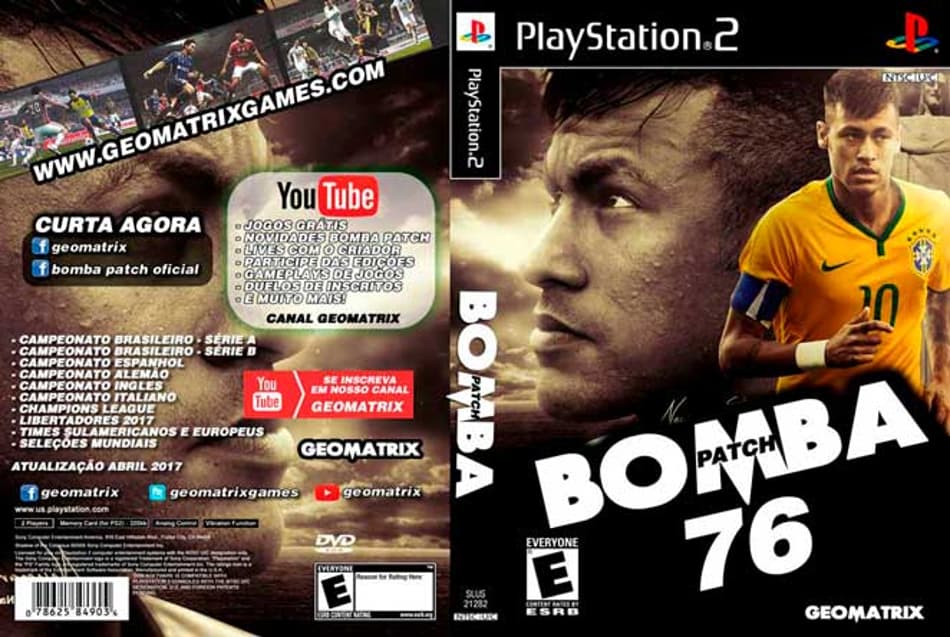 Game marcante no auge do PlayStation 2, o Bomba Patch surgiu em 2007 e ainda segue sendo atualizado até hoje, continuando com muitos fãs. O patch, inicialmente baseado no Winning Eleven 10, mas com a inclusão de clubes do Brasil, é uma criação brasileira e atualmente está na versão 87. Nesta galeria, listamos quase todas as capas do Bomba Patch que estão disponíveis na internet.