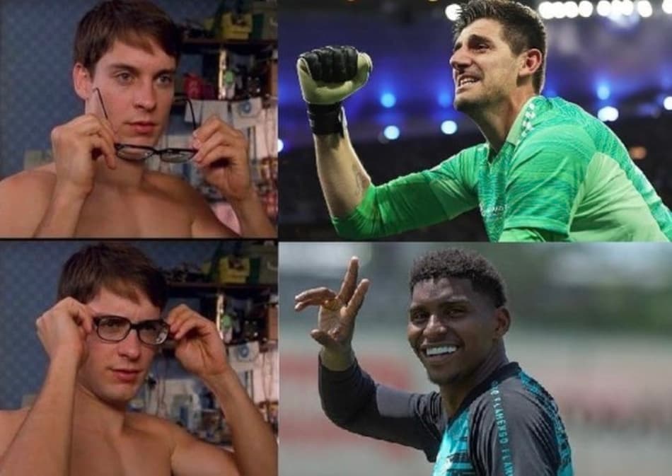 Goleiro vinha sofrendo com falhas, mas foi decisivo na vitória por 2 a 1 do Flamengo sobre o Fluminense, neste domingo, no Maracanã. Nas brincadeiras, não faltaram comparações com Courtois, goleiro campeão da Champions com o Real Madrid. Veja! (Por Humor Esportivo)