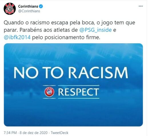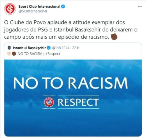 Não ao racismo! Atletas e clubes de vários países se manifestam após caso na Liga dos Campeões