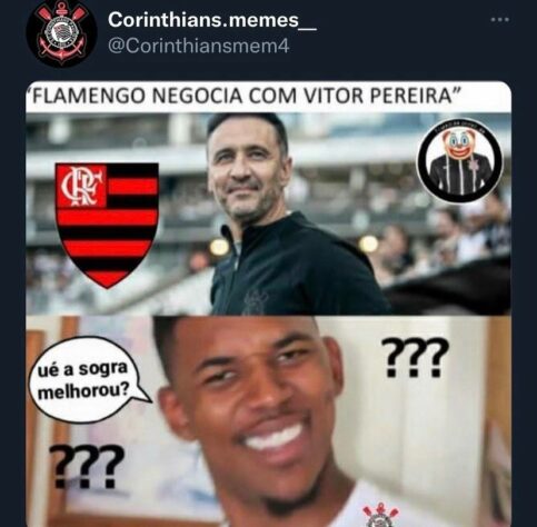 Com a confirmação da saída de Dorival Júnior do Rubro-Negro, nome do técnico português ganhou força no clube carioca e anúncio oficial pode sair nas próximas horas. Há menos de um mês, Vítor deixou o Corinthians alegando questões familiares, principalmente um problema de saúde da sogra, e fato foi ironizado em memes nas redes sociais. Confira! (Por Humor Esportivo)