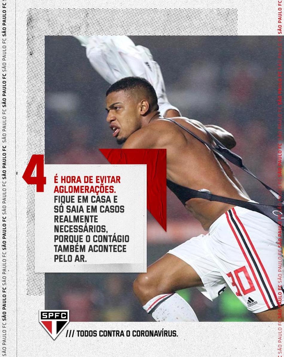 Fonte:O São Paulo produziu um informativo para que seus torcedores se previnam do coronavírus em meio à pandemia. Veja a seguir as dez dias dadas pelo Tricolor (que servem também para quem torce para outros clubes, claro!).