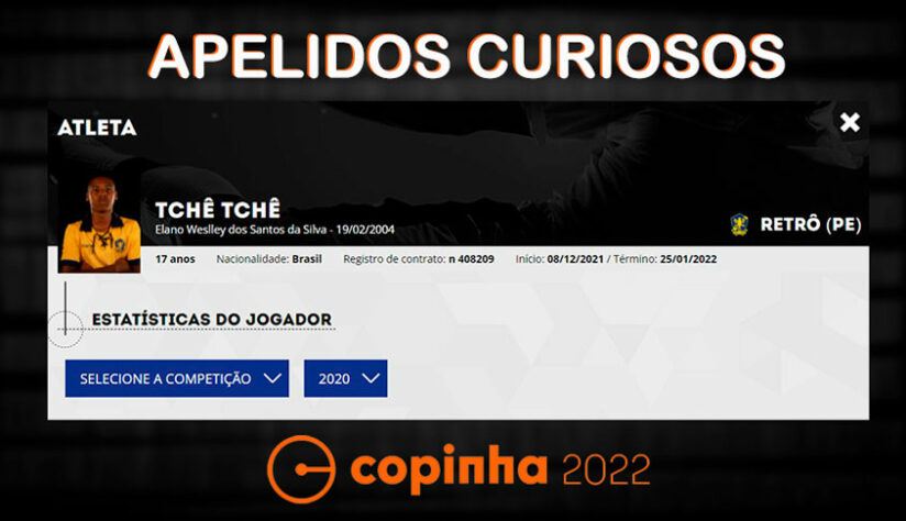 Está cada vez mais raro vermos surgir jogadores com apelidos criativos, daqueles que marcam geração independente do futebol apresentado dentro de campo. Antes mesmo de chegar aos profissionais, muitos empresários têm adaptado os nomes dos atletas e priorizado o monótono nome seguido do sobrenome. Porém, a Copinha ainda nos proporciona boas surpresas com apelidos criativos e curiosos. Separamos uma lista com mais de 60 jovens jogadores inscritos na competição cujos apelidos chamam a atenção. Confira! (Por Humor Esportivo)