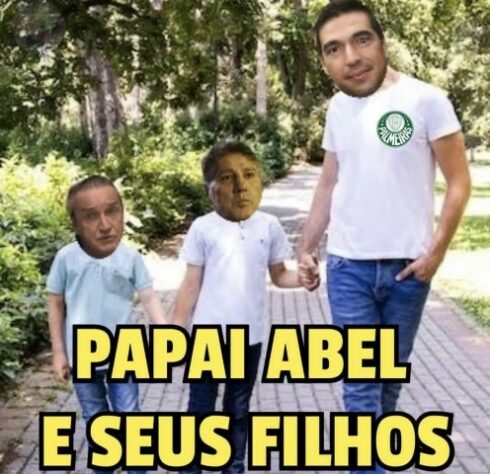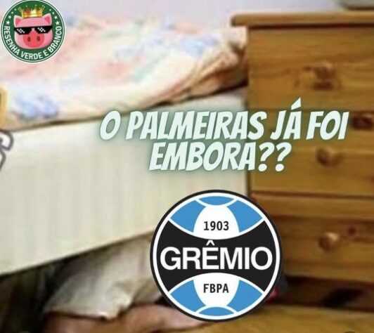 Equipe comandada por Abel Ferreira venceu o Grêmio por 4 a 1 na noite desta quarta-feira, assumiu a liderança provisória do Brasileirão e fez a alegria dos torcedores palmeirenses nas redes sociais. Confira as melhores montagens! (Por Humor Esportivo)